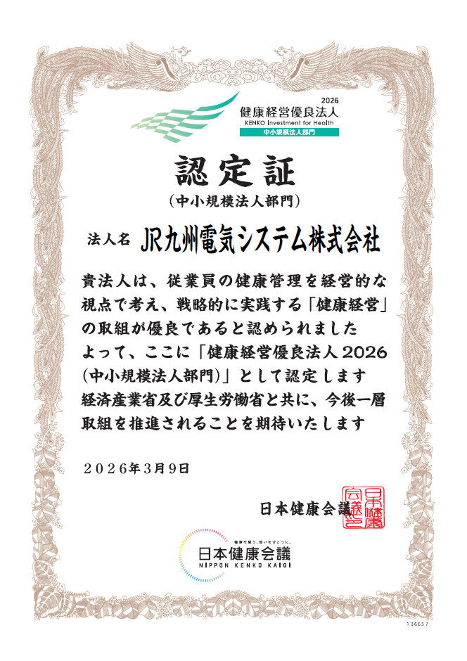 健康経営優良法人認定制度において、「健康経営優良法人2026(中小規模法人部門)」 に認定されました。